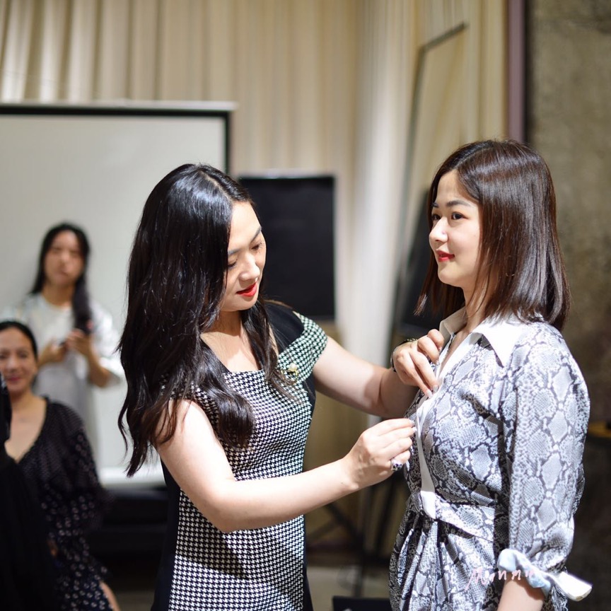 然后,她用簡潔易懂的方式來教授大家如何在生活中用一套簡單有效的方法來塑造自己的形象,提升個人審美品味,從而穿出時尚感,穿出好氣質(zhì)。在實踐中,從妝容發(fā)型,再到服裝搭配,大家對自我的認(rèn)識有了顯著的提高。從而對自己的搭配,自信滿滿。