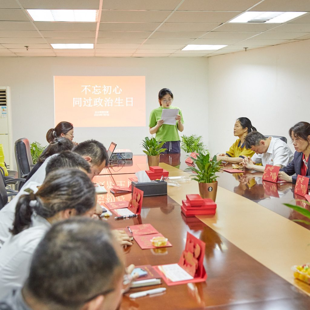 同過政治生日,重喚入黨初心。會上率先開啟了一場特殊的“政治生日”,全體黨員觀看了短片《十份入黨申請書》,重溫習(xí)近平總書記在梁家河充滿艱辛與考驗(yàn)的入黨之路?!拔抑驹讣尤胫袊伯a(chǎn)黨,擁護(hù)黨的綱領(lǐng)……”隨后,組織重溫入黨宣誓儀式。在鮮紅的黨旗下,全體黨員舉起右手、緊握拳頭、莊嚴(yán)宣誓,一字一句讓大家回憶起入黨時(shí)的激動心情。一句句鏗鏘誓言見證著新時(shí)代共產(chǎn)黨員的莊嚴(yán)承諾,也回答了103年不變的初心使命。黨員們結(jié)合自己的工作生活,暢談分享回顧入黨前后的成長歷程,這樣的“儀式感”不僅重喚黨員入黨的熾熱情懷,更是激勵(lì)廣大黨員常拭信仰之燈,常省信仰之問,做到對黨虔誠而執(zhí)著、至信而深厚,鼓勵(lì)員工做到初心不改,拼搏進(jìn)取干一流工作,振奮精神創(chuàng)一流業(yè)績。